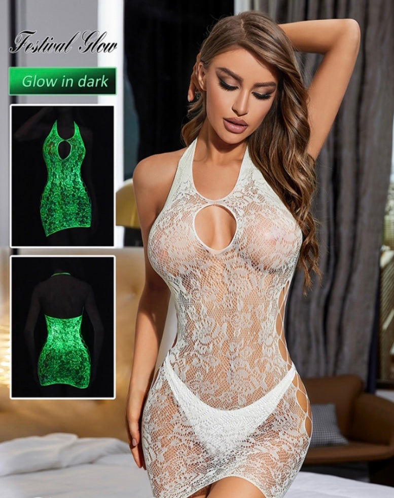 Lisa is the ultimate statement piece for confidence and allure. Embrace elegance with an edgy twist and let this glow-in-the-dark bodystocking become your go-to option for intimate moments or photos that pop.